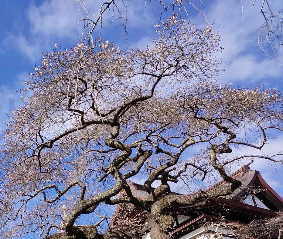 2月4日のお宮参りに詣でた塩竃神社。駐車場から神殿までの坂道を上りますが、貴賓館前の桜の木に花が咲いています。「まさか!?」と思い、何度も見返しますが本物の桜です。地球温暖化で、とうとう東北で2月に桜が咲く位気温が高いのかとショックを受けます。雪深い北上市でさえ雪がないのですからあり得ないことではありませんよね。