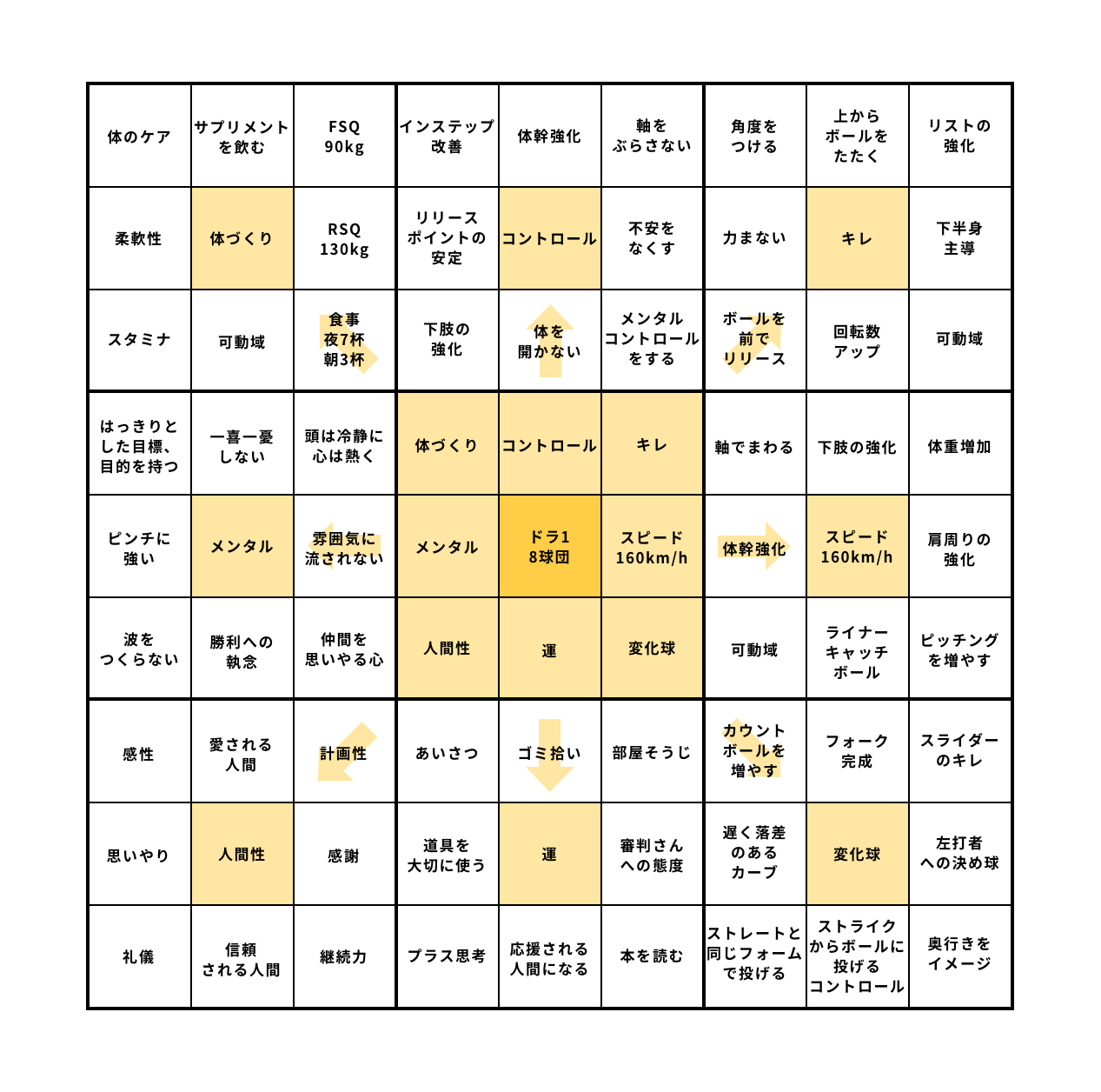 高校時代の監督・佐々木洋氏からの教えにより作成したこのシートは、