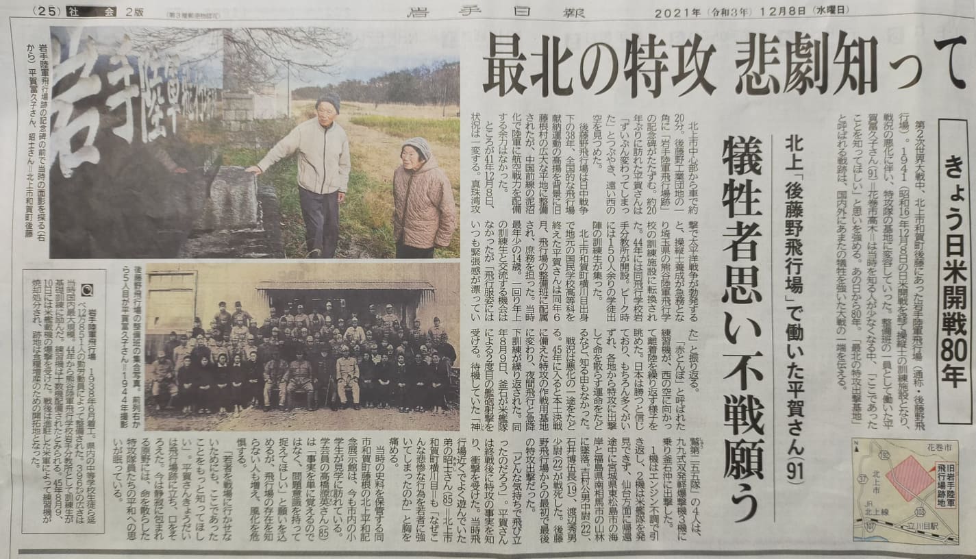 本日の岩手日報に、北上市和賀町にある後藤野飛行場の悲劇についての記事が掲載されていた。
