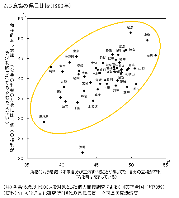 古い資料ですが、ムラ意識の県民性を比較したもので、