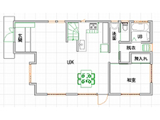 無駄な廊下をなくし、キッチンを中心に奥様の動線を考えた間取りを提案しました。断熱リフォームだからできる間取りです。 |